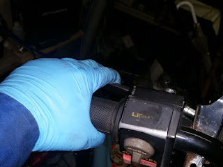 ここでリヤブレーキレバーで「遊び」を確認します。